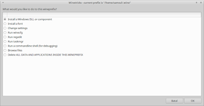tampilannya akan seperti di bawah ini, pilih “select the default wine prefix” :